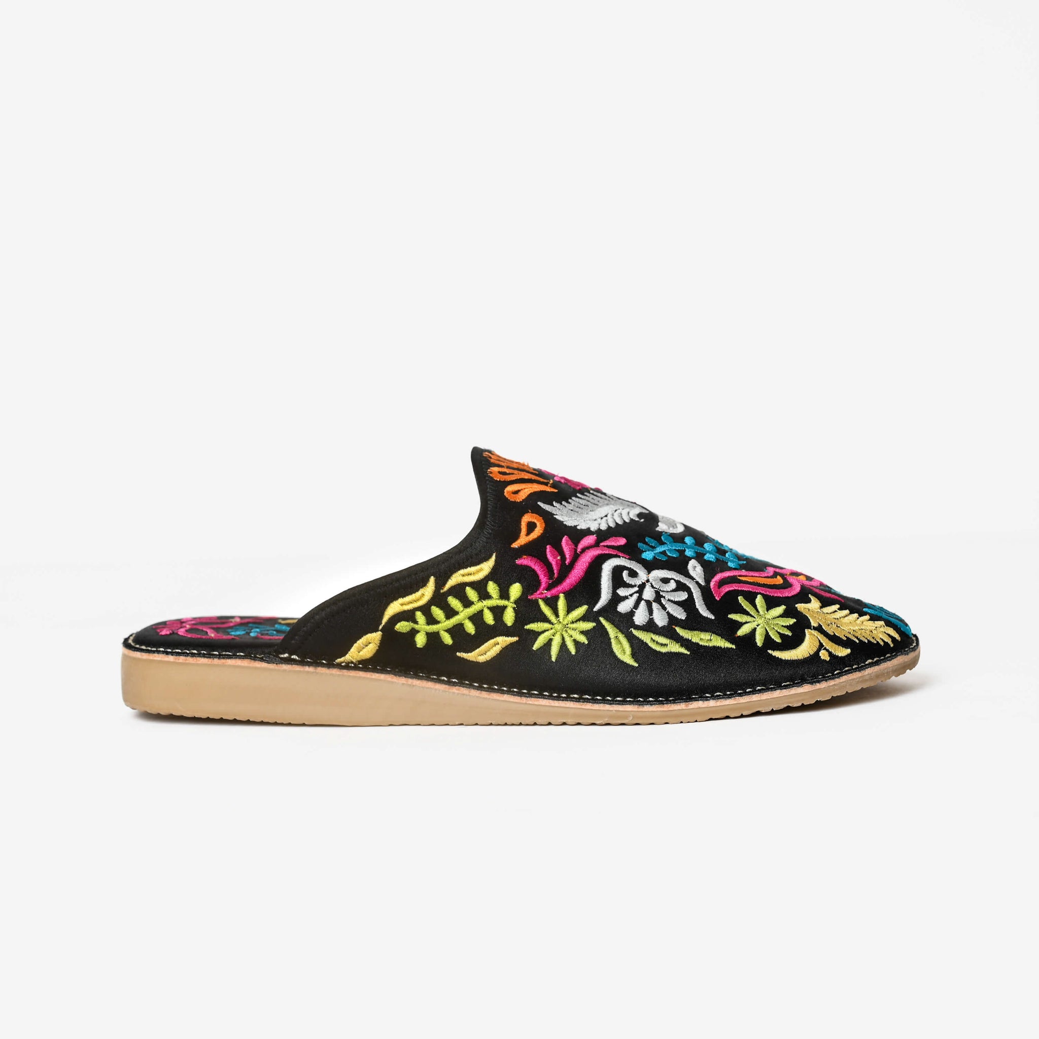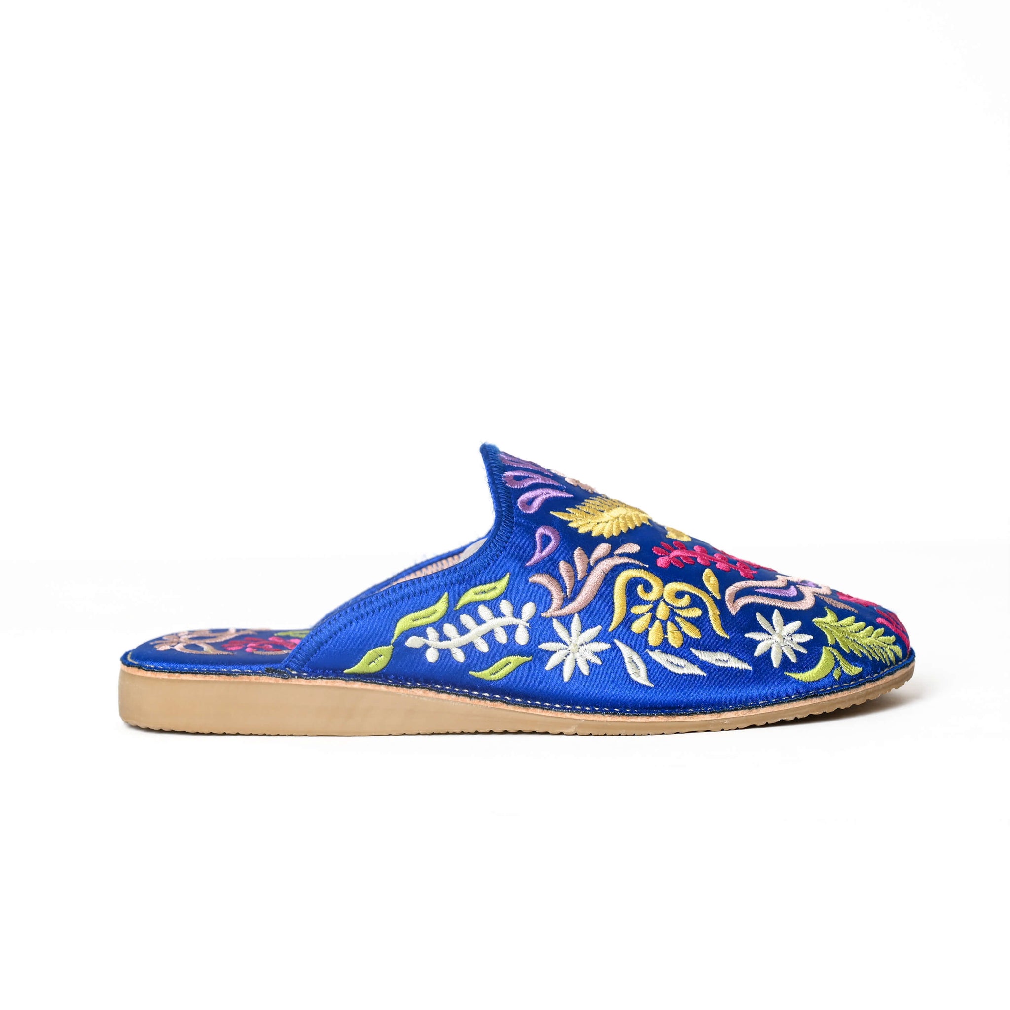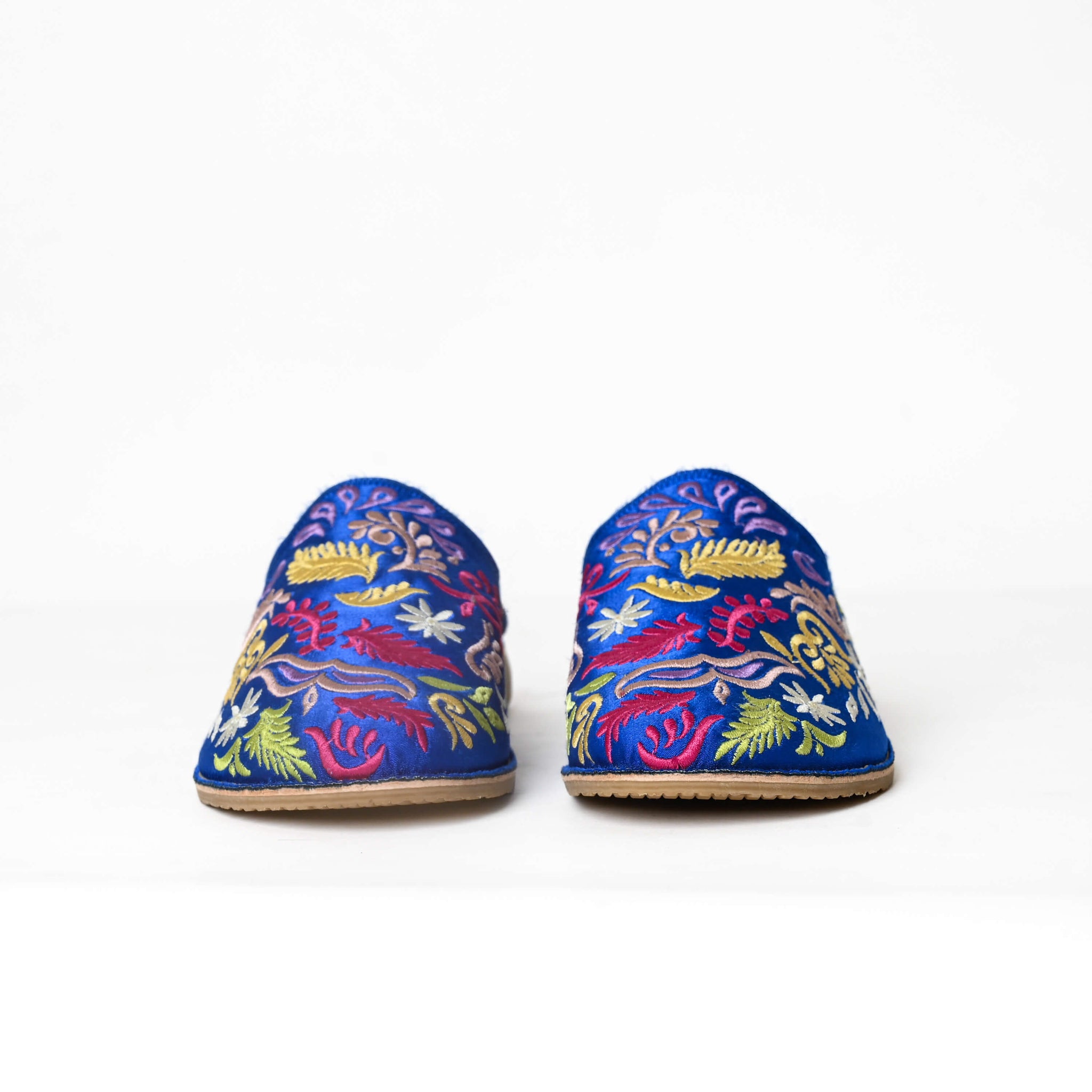 Mules marocaines brodées à la main pour femmes – Babouches en cuir à motif floral