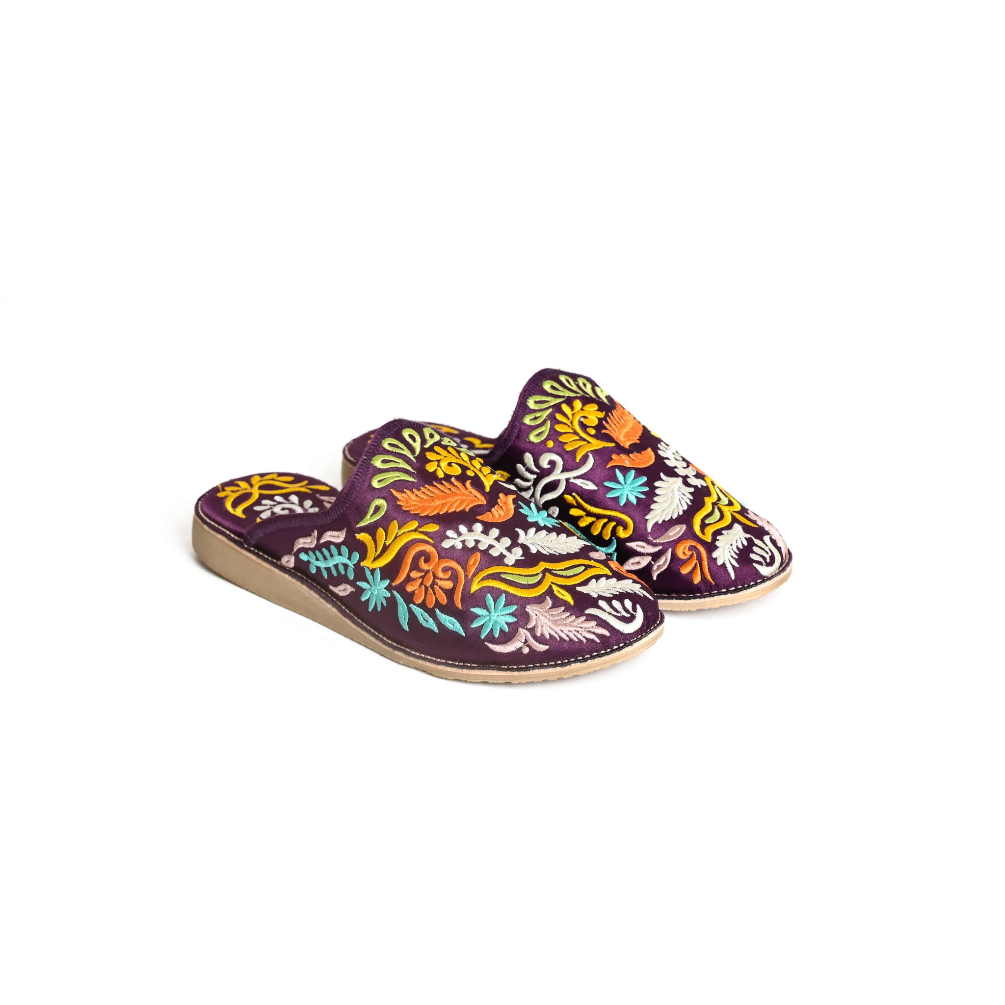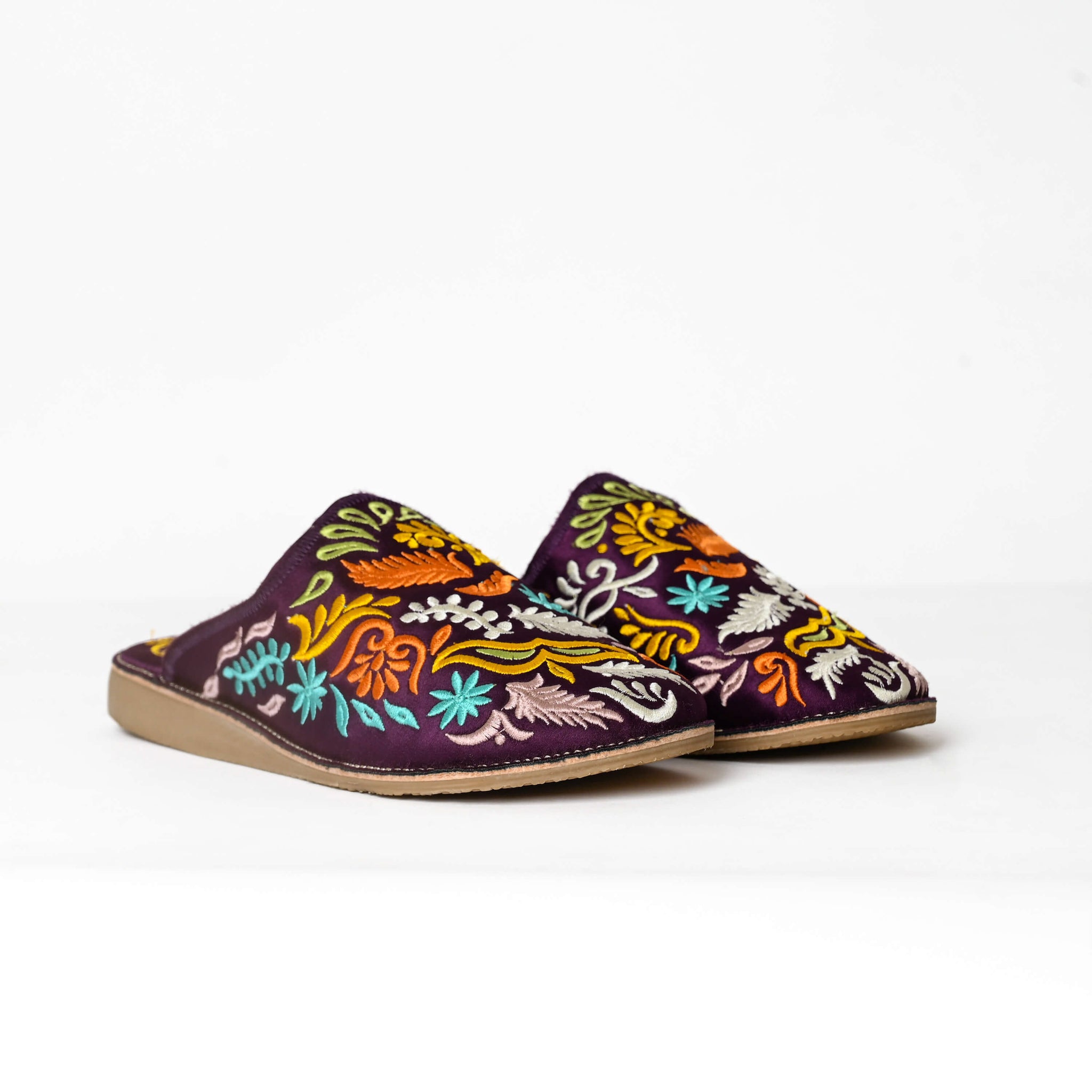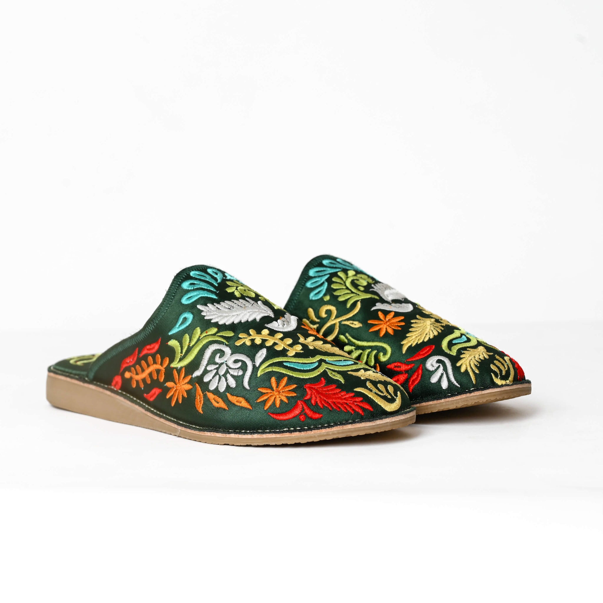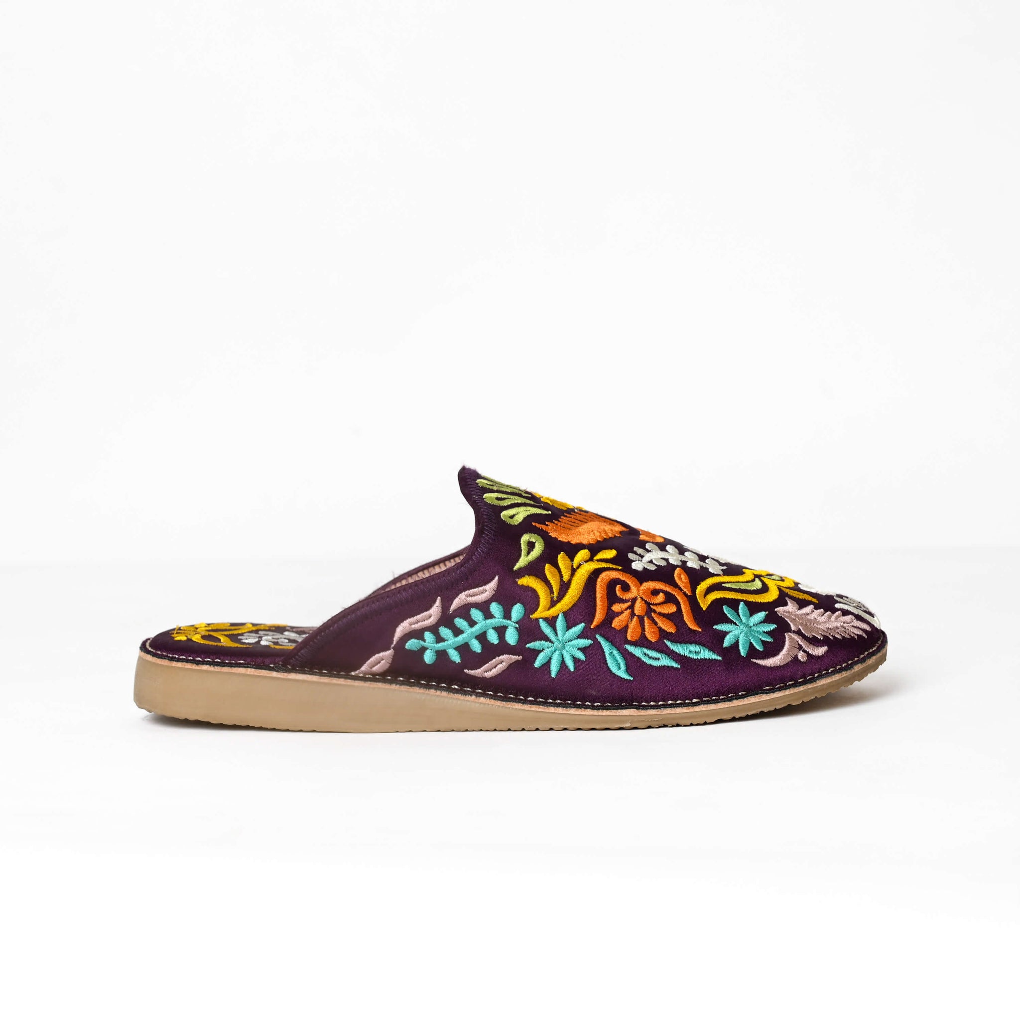 Mules marocaines brodées à la main pour femmes – Babouches en cuir à motif floral