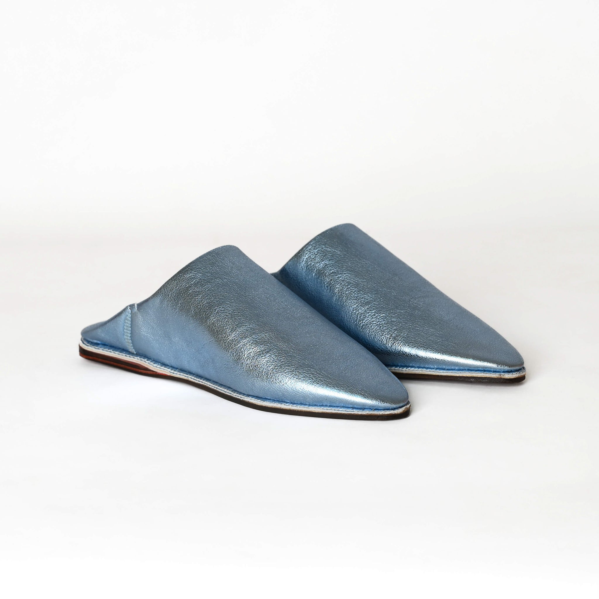 Ogni paio è realizzato a mano in pelle e rifinito con le linee pulite e minimali che rendono le Belgha marocchine così distintive. Il design a sabot aperto le rende pratiche e facili da indossare, mentre la forma a punta aggiunge un tocco lucido e femminile.