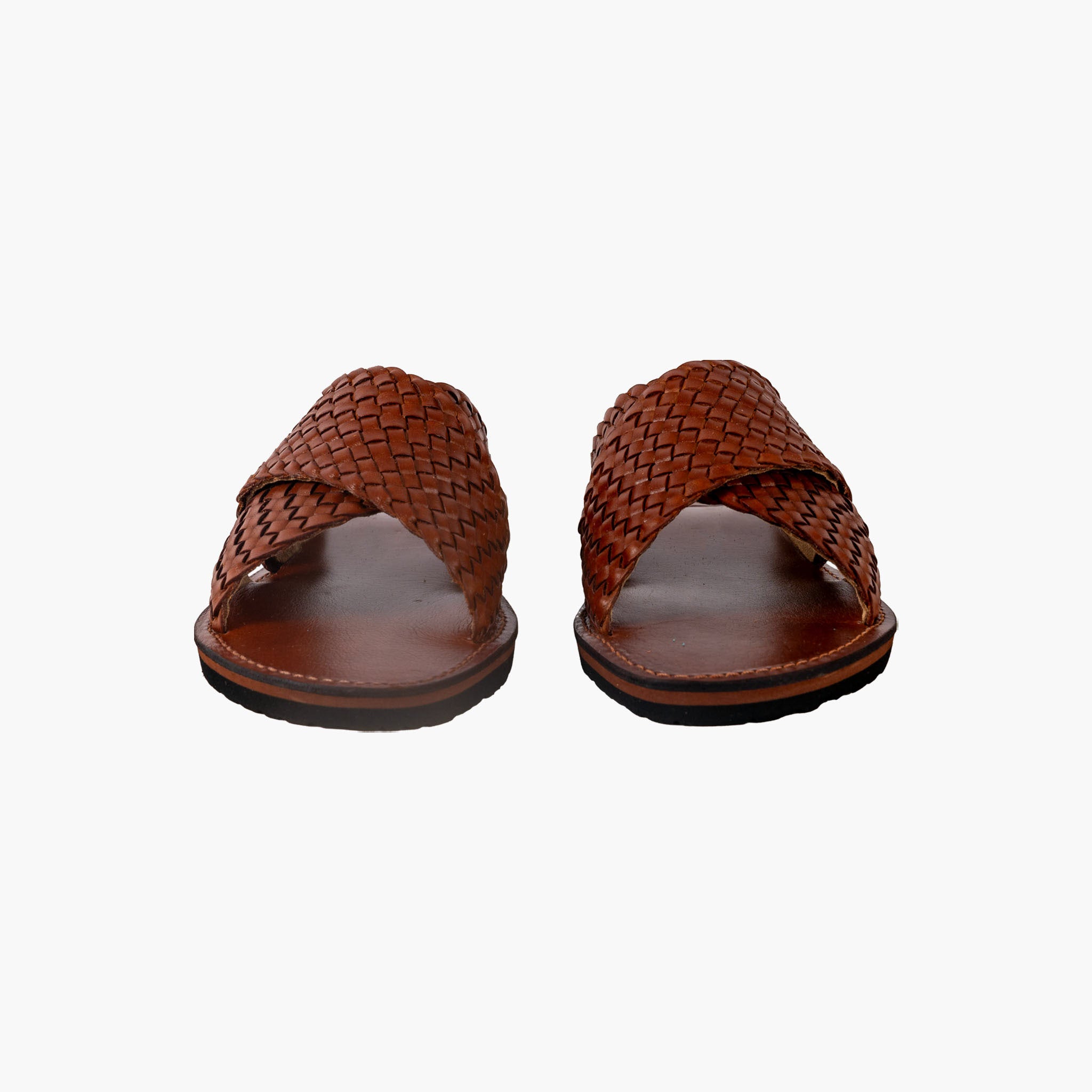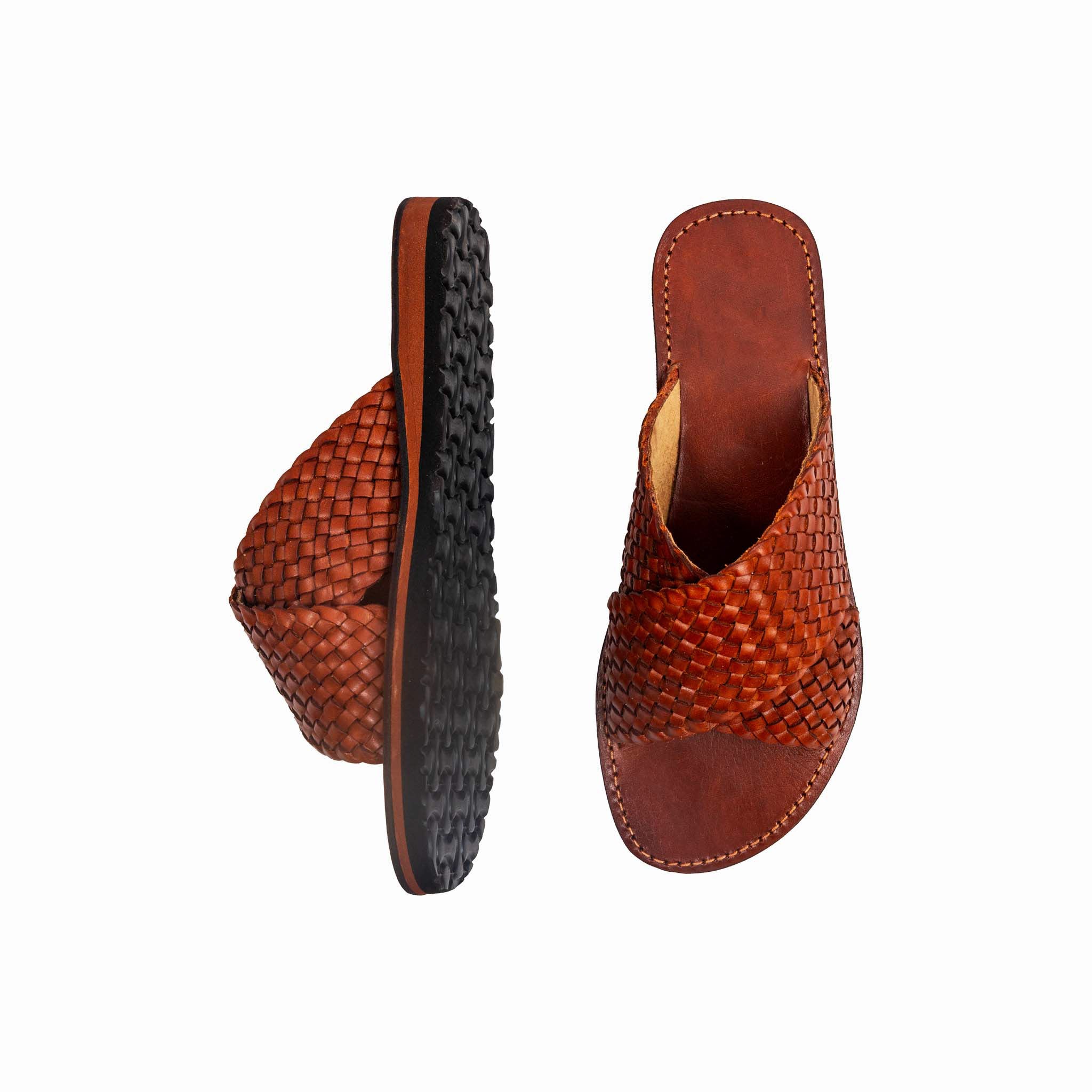 Aggiungi un tocco di artigianato senza tempo e raffinatezza quotidiana al tuo guardaroba con questi sandali da uomo in pelle intrecciata marrone, ispirati ai modelli marocchini. Disegnati con una raffinata silhouette a punta aperta e un'elegante costruzione a fascia incrociata, questo paio fonde l'ispirazione tradizionale marocchina con una finitura pulita e maschile adatta all'abbigliamento casual moderno.