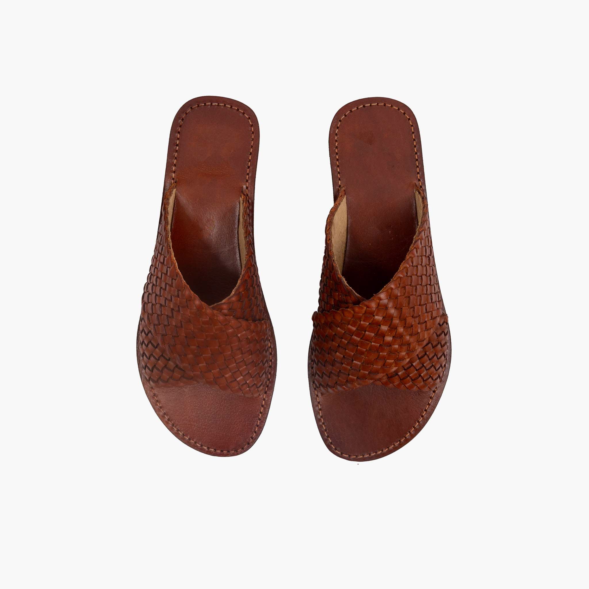 La tomaia presenta un intricato design in pelle intrecciata a mano in una ricca tonalità marrone, che conferisce ai sandali texture, profondità e carattere artigianale. Le fasce intrecciate incrociate creano un look equilibrato e sicuro, aggiungendo al contempo ricchezza visiva alla silhouette. Un sottopiede in pelle liscia e una suola piatta completano il design, rendendo questi sandali comodi e versatili per vestire nella bella stagione, per lo stile da vacanza e per un uso quotidiano raffinato.